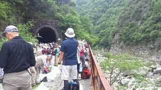 「兵庫の山からゴミを一掃しよう」 今年は、兵庫労山クリーンハイク36年目。北摂山の会にとっては 78回目。 北摂山の会だけでなく、たくさんの山の会が一緒にゴミ拾いを行った。 道はずっと平坦なJRの廃線跡。渓谷沿いで景色が綺麗。 トンネルも数本ある楽しいコース。 ゴミは、あまりない。とても気持ちのいいクリーンハイクだった。 270名 参加 333kg ゴミ総量 |